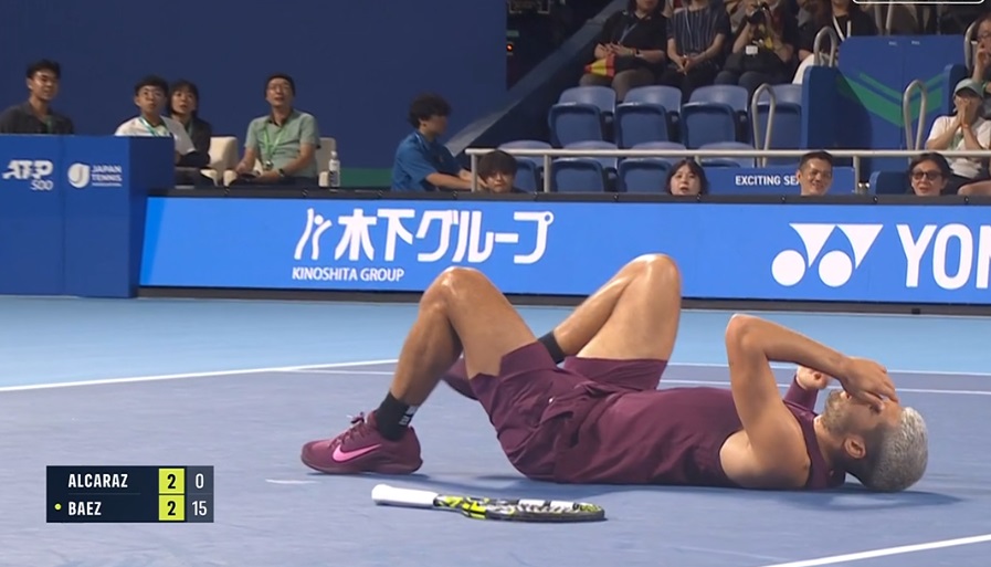 [VÍDEO] Que susto! Alcaraz cai e sente o pé esquerdo em Tóquio